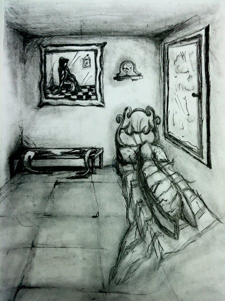 Mis ojos no estaban acostumbrados a la claridad, y por un momento todo fue ardiente blancura. Me tape los ojos y gire la cabeza hasta que mi vista se adaptó, y lo que vi me sobrecogió. Aquel lugar era una pequeña sala, cúbica, gris, sin adornos, y lo más intrigante: no tenía puerta, tan sólo una pequeña ventana. Pero en ese momento no me sorprendió, tan solo observaba. Con esfuerzo me senté, y seguí observando la habitación. Era simple. Tenía un camastro, del que me caí, a mi izquierda. Al fondo estaba la ventana, de no más de un metro de alta. A su derecha había una mesita anclada a la pared, y un taburete. A la izquierda, sólo un espejo en el muro. La luz provenía de un aplique encastrado en el muro, pues nada de luz atravesaba el ventanuco. A duras penas conseguí levatarme, aunque ya tenía más fuerzas.